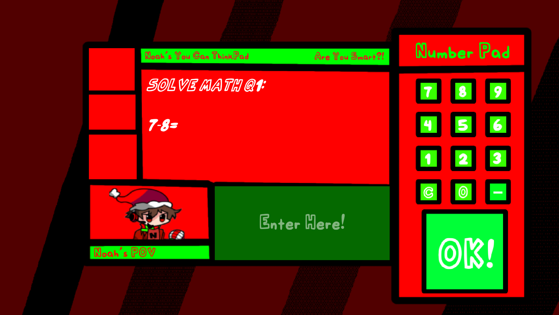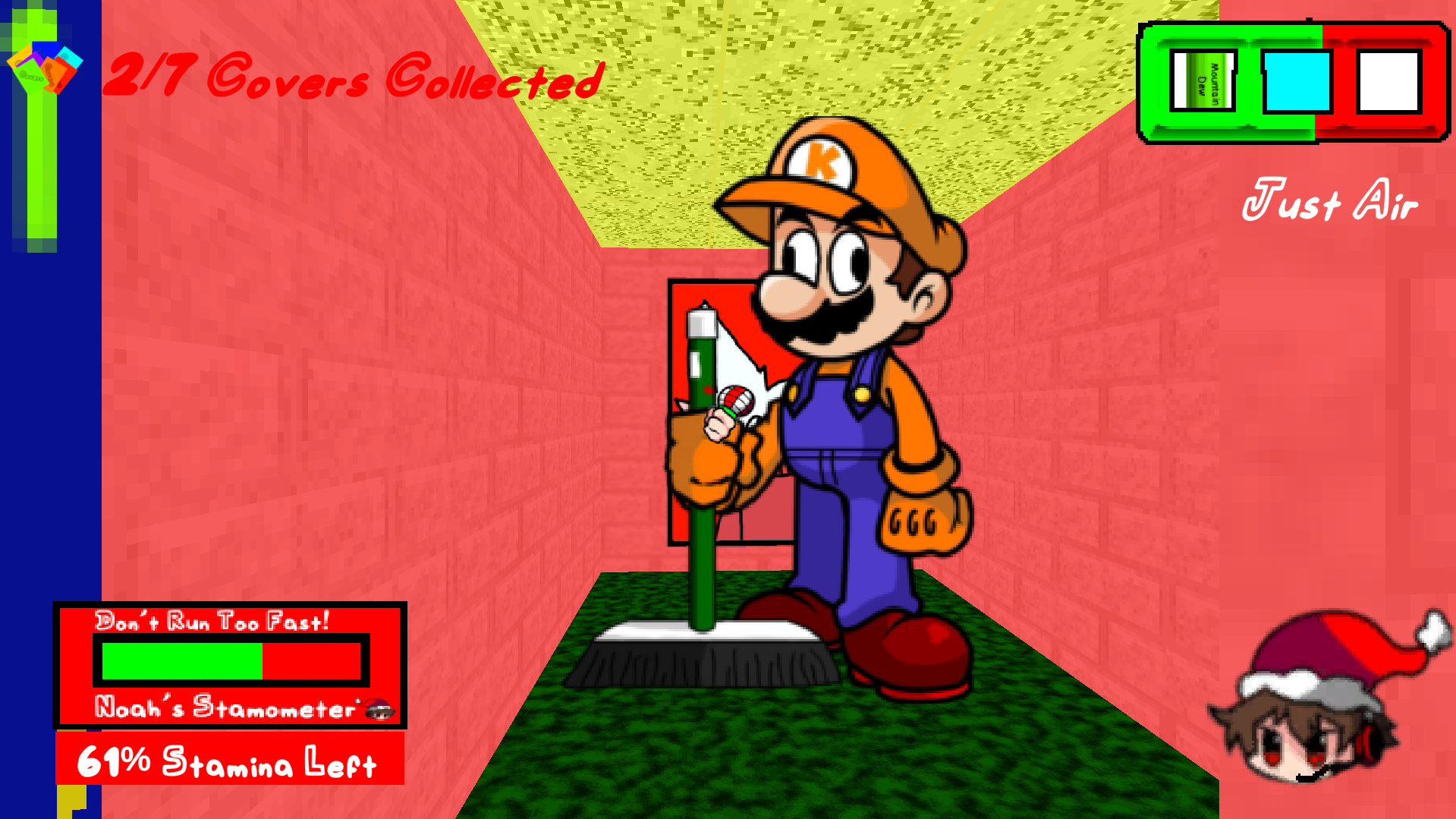 Noah's Basic's Remake is a take at the OG Noah's Basic's that came out in late 2023. This game is improved and remade Noah's Basic's. Noah is Baldi and he will try and come get you and you need to collect all 7 Covers and exit the school to win! But Oh Noses his little friends are there to try and stop you from completing the task of getting all 7 Covers. So anyways Good Luck don't get killed from Noah he got very sharp knife he will kill you with it if he gets you!